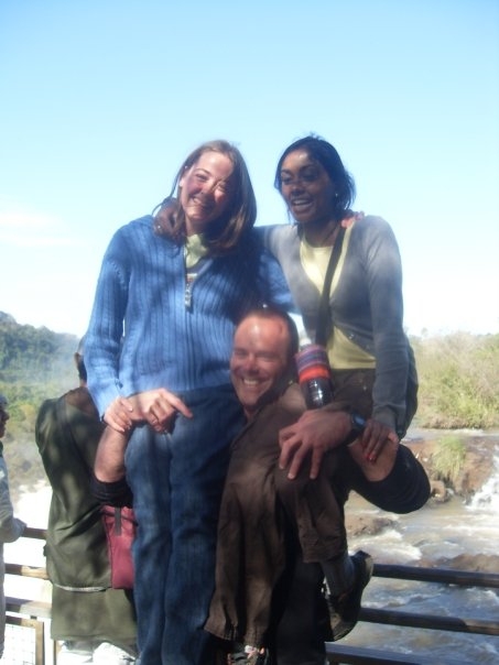 Nel is on my right shoulder as I boost the ladies up to get a better view of the Iguassu Falls on the Brazil/Argentina border.