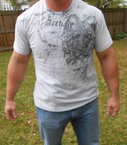 This is the worst case scenario…hiding the gun under a tight fitting, light-colored T-shirt. Even here, the outline of the gun is broken up well.
